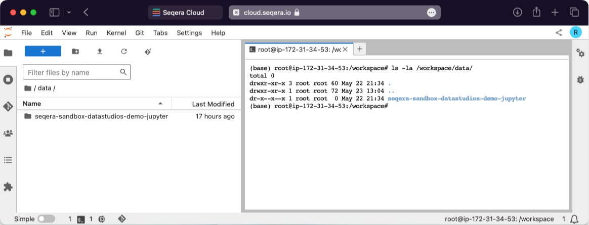 In your interactive analysis environment, open a new terminal and type ls -la /workspace/data. This displays all the mounted datasets available in the current studio session.